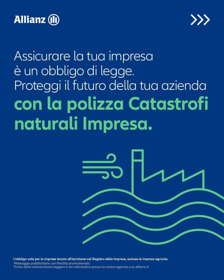 Assicurare il domani del tuo business è un obbligo, ma con Catastrofi naturali Impresa diventa anche un’opportunità. Scopri la soluzione personalizzabile di Allianz che tutela