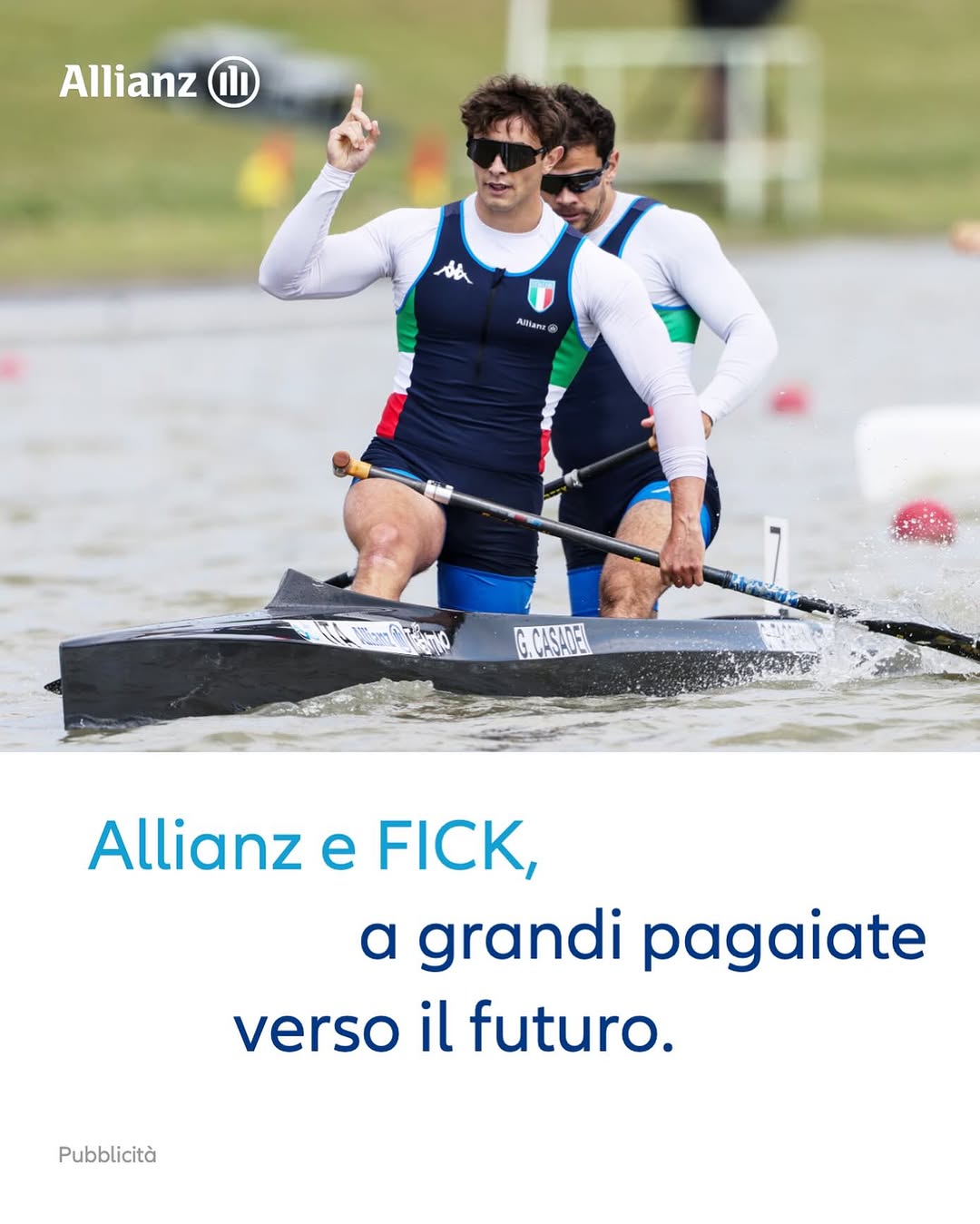 Allianz, come sponsor di maglia delle nazionali di canoa e kayak, è lieta di essere al fianco degli atleti e dei paratleti azzurri in occasione di questo grandissimo appuntamento sportivo. La partnership con la Federazione Italiana Canoa Kayak ben si colloca nella strategia di Allianz al fianco dello sport italiano, in particolare per lo sviluppo di opportunità per le giovani generazioni.